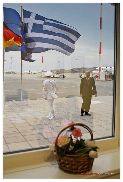 Επίσκεψη αστραπή πραγματοποίησε την Τρίτη 9 Οκτωβρίου 2012 η Γερμανίδα Καγκελάριος Άνγκελα Μέρκελ στην Αθήνα. Από τις 1.30 το μεσημέρι, που προσγειώθηκε το αεροπλάνο της Καγκελαρίας, έως αργά το απόγευμα στις 7.30 που αναχώρησε, η Αθήνα ζούσε σε τρελλούς ρυθμούς και ένταση. Tα μέτρα ασφαλείας πρωτόγνωρα, η ένταση όλων των εμπλεκομένων στο κόκκινο…Οι φωτογραφίες είναι από την επίσημη υποδοχή στο αεροδρόμιο, καθώς και από την αναχώρησή. Ενδιάμεσα, βρέθηκα για λίγο στο Χίλτον, όπου έγινε η συνάντηση της Άνγκελας Μέρκελ με έλληνες επιχειρηματίες και οικονομικούς παράγοντες, συνάντηση που οργάνωσε το ελληνο-γερμανικό επιμελητήριο και η Γερμανική πρεσβεία στην Αθήνα.